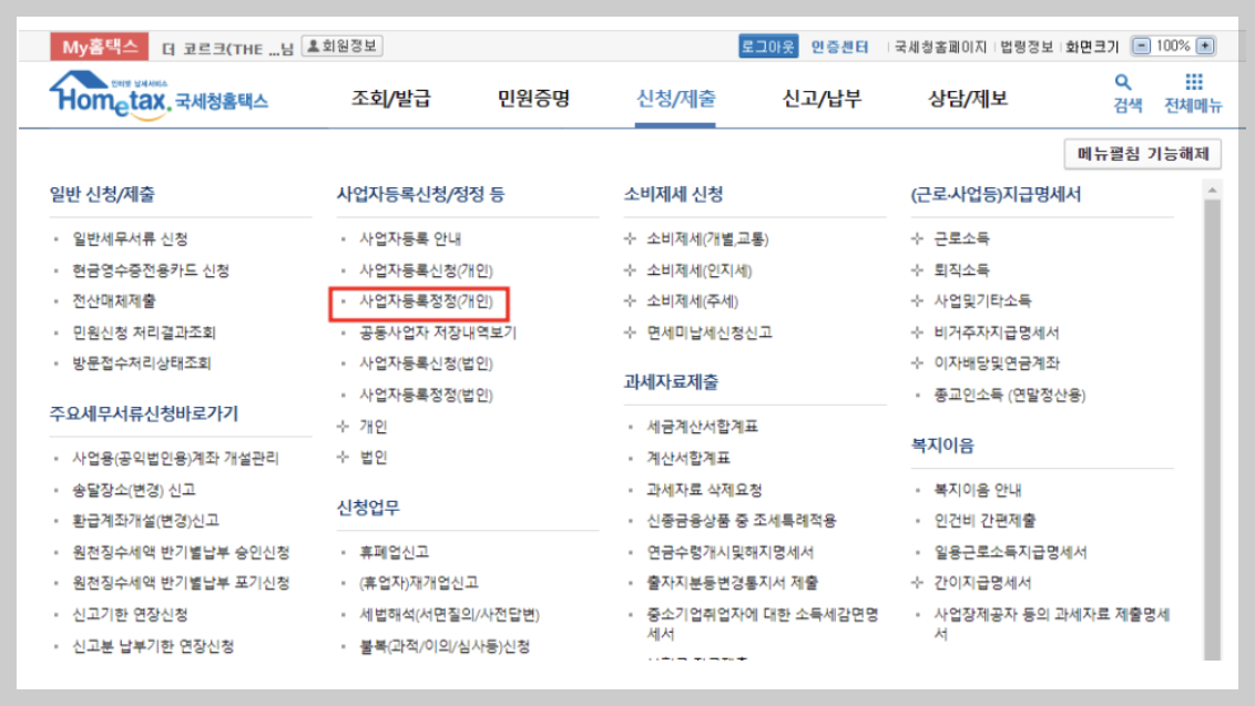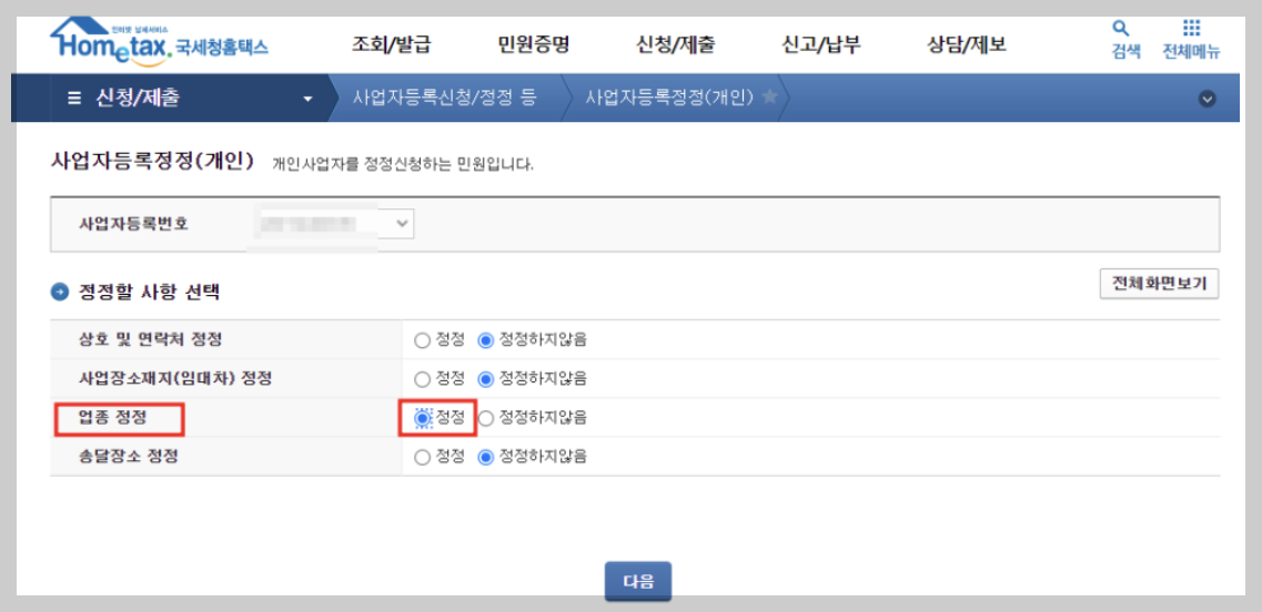 이렇게 건강식품 영업신고증 승인이 완료가 되면 이제 다음으로 사업자등록증 업종 정정 신고하기를 하시면 됩니다.
