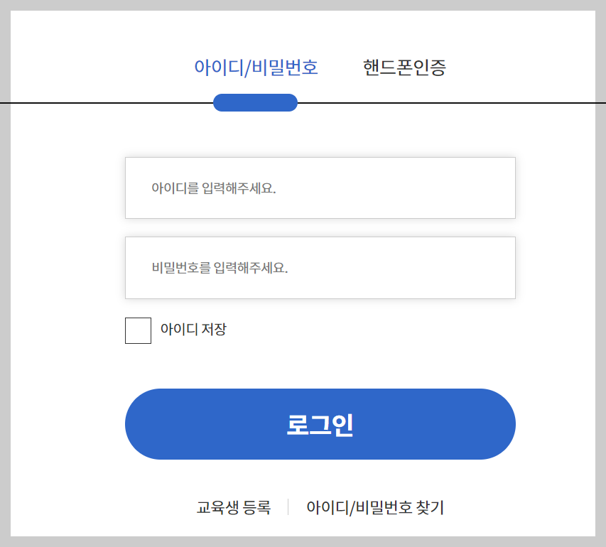 ▶ 먼저 로그인을 하려면 두 가지 방법이 있습니다. 교육생으로 등록하는 방법과 전화번호로 인증하여 교육을 신청하는 방법이 있는데 번거로운 걸 싫어하는 저는 그냥 핸드폰 인증만으로 로그인을 하고 교육신청을 했습니다.