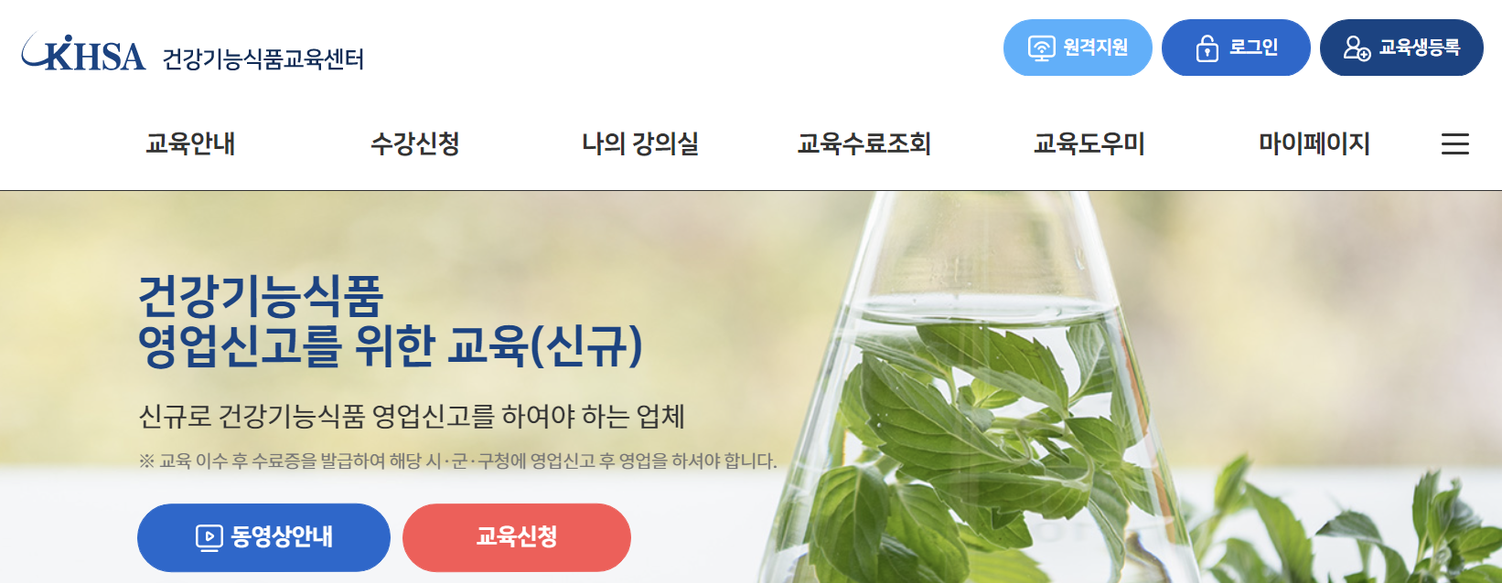 ▶ 건강기능식품 영업신고를 위한 교육을 받기 위해 건강기능식품교육센터에 접속해서 교육을 신청해야 합니다