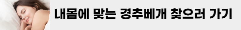 이러한 이유들로 경추베개를 사용하면 목과 어깨의 피로를 줄여주고 수면 품질을 향상해 주기 때문에 내 몸에 맞는 경추베개를 사용하게 되면 수면 향상과 자세교정에 많은 도움을 받을 수 있습니다.