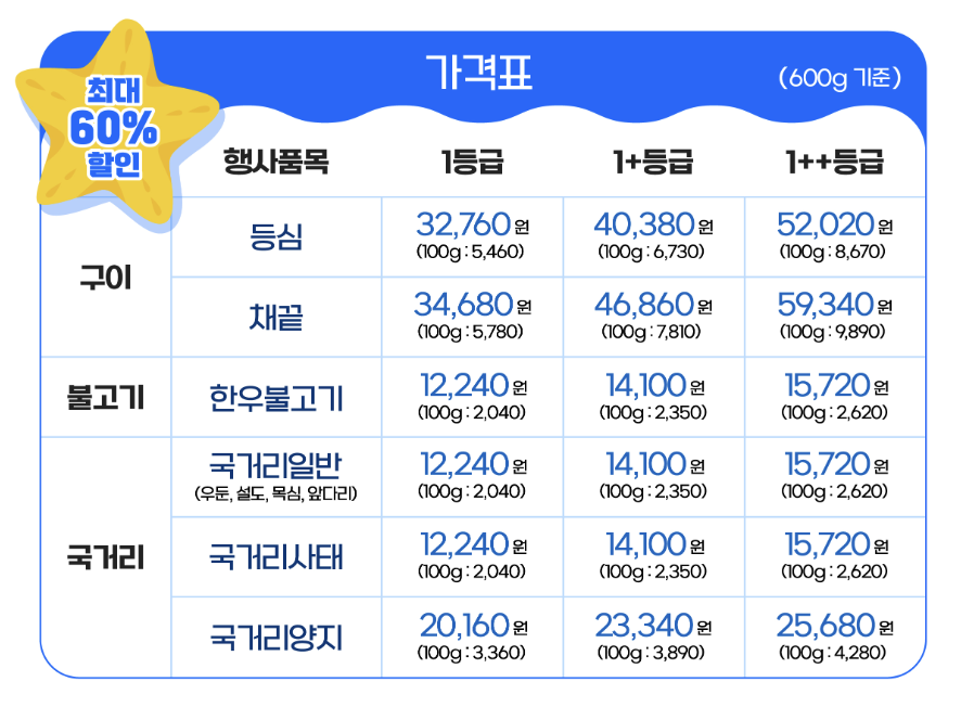 ▶ 온라인한우장터 가격표