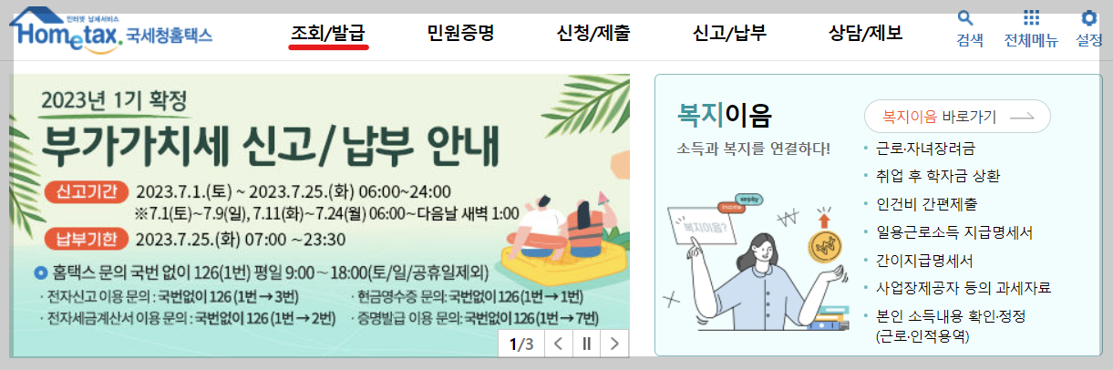 홈택스에 접속해서 간단하게 세금 계산서 발행이 가능합니다. 세금 계산서 발행시 상품명, 규격, 단가 등을 기재해야 하므로 간단하게 메모를 해놓고 시작하면 좋습니다. 그리고 세금계산서 발행 전 부가세 계산하는 방법도 간단하게 익히고 가면 더욱 좋습니다. (홈택스 바로가기)