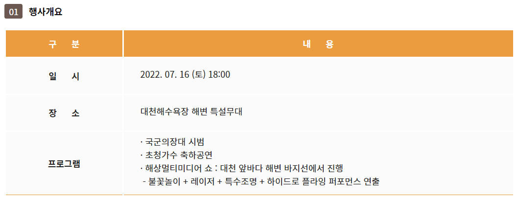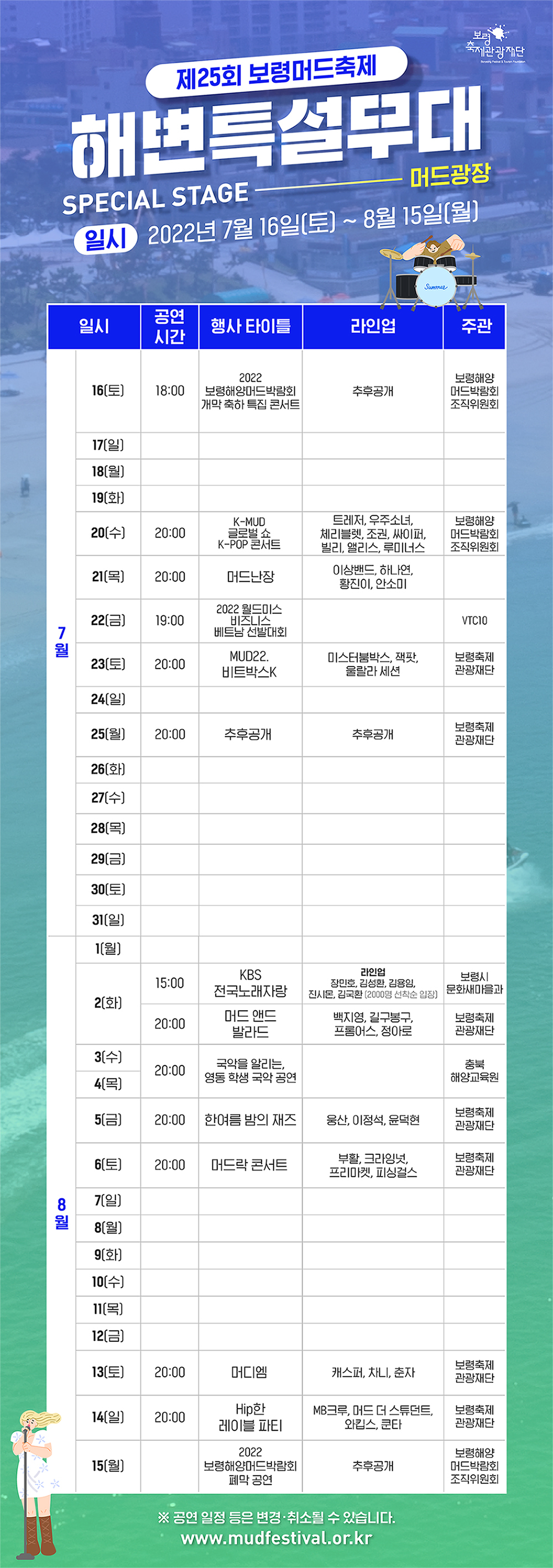 ☞ 그리고 제일 관심이 많으신 해변무대공연 라이업은 다음과 같습니다. 아마도 행사가 진행되면서 일정 변화나 라인업이 구체화될 것 같아요